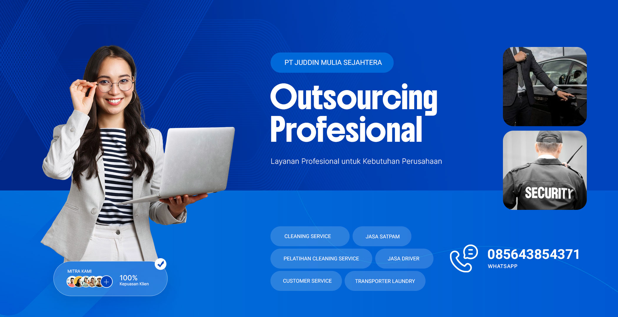 Kami adalah perusahaan penyedia layanan outsourcing yang berfokus pada penyediaan tenaga kerja profesional untuk berbagai kebutuhan operasional perusahaan. Kami menyediakan layanan cleaning service, satpam, driver, transporter laundry, customer service, hingga pelatihan tenaga kerja yang dirancang untuk meningkatkan kualitas serta efisiensi operasional mitra kami.